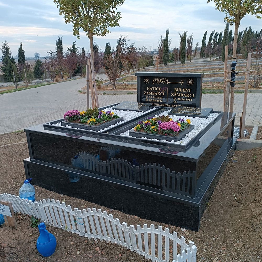 Uzun ömürlü granit yapısıyla şık ve prestijli aile mezarı tasarımı.